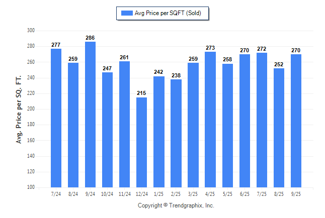 September 2025 Average Sold Price per Square Footage was Neutral**