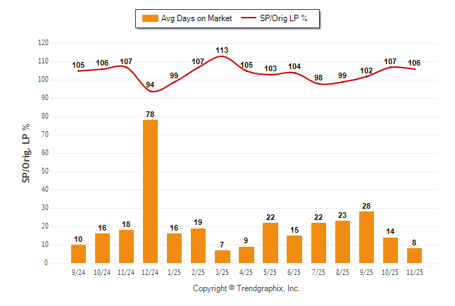 November 2025 Average Days on Market trend was Falling and Sold/Original List Price Ratio Remains Steady**