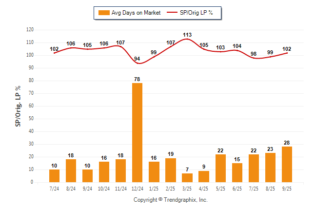 September 2025 Average Days on Market trend was Rising and Sold/Original List Price Ratio Remains Steady**