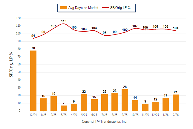February 2026 Average Days on Market trend Remains Steady and Sold/Original List Price Ratio Remains Steady**