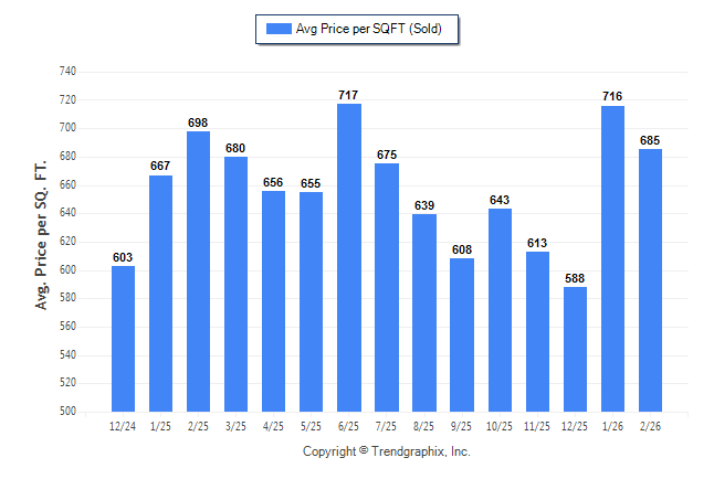 February 2026 Average Sold Price per Square Footage was Neutral**