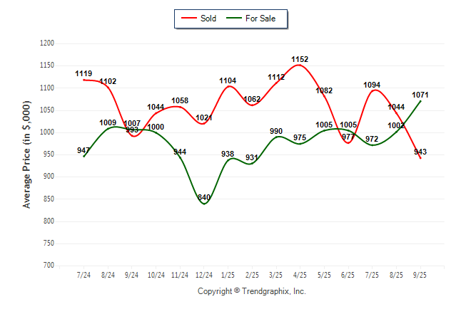 September 2025 Average For Sale Price was Appreciating and Average Sold Price was Depreciating**