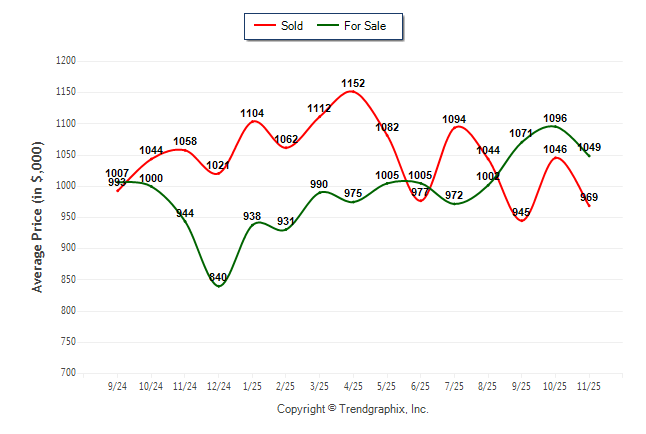 November 2025 Average For Sale Price was Neutral and Average Sold Price was Neutral**