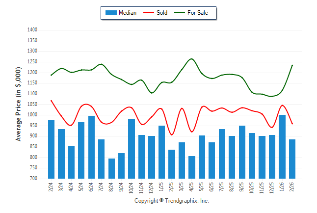February 2026 Median Price was Neutral, Avg. For Sale Price was Appreciating, and Avg. Sold Price was Neutral**