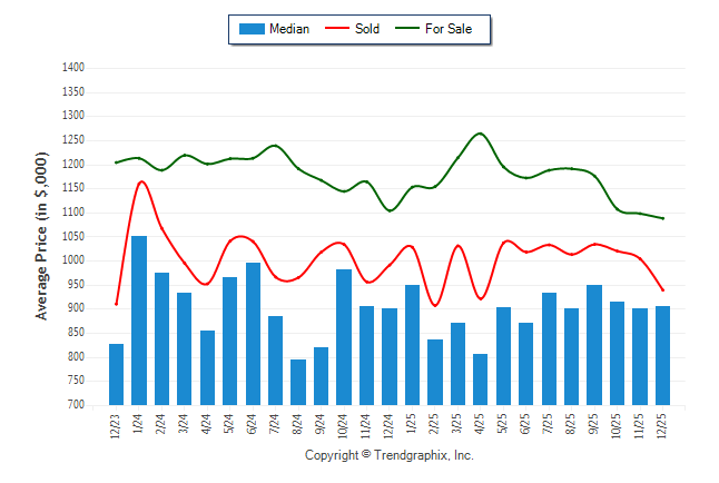 December 2025 Median Price was Neutral, Avg. For Sale Price was Depreciating, and Avg. Sold Price was Depreciating**