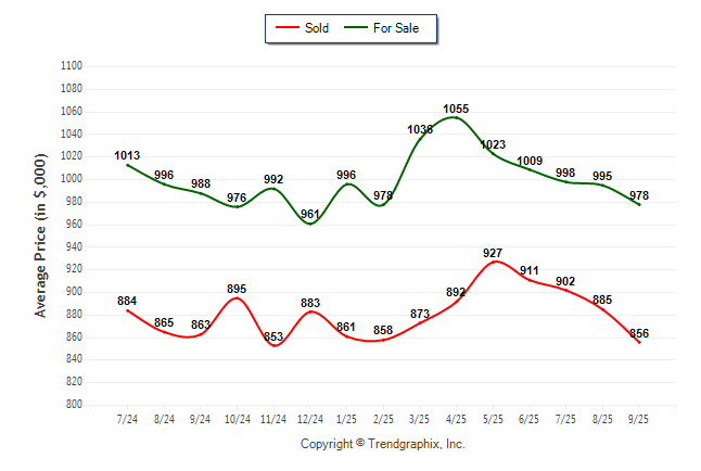 September 2025 Average For Sale Price was Depreciating and Average Sold Price was Depreciating**