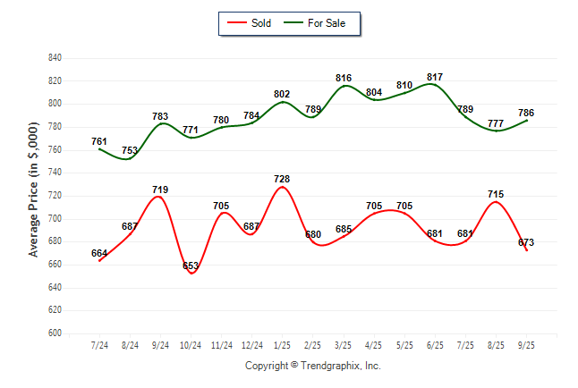 September 2025 Average For Sale Price was Neutral and Average Sold Price was Depreciating**