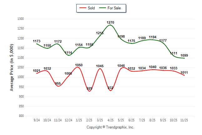 November 2025 Average For Sale Price was Depreciating and Average Sold Price was Depreciating**