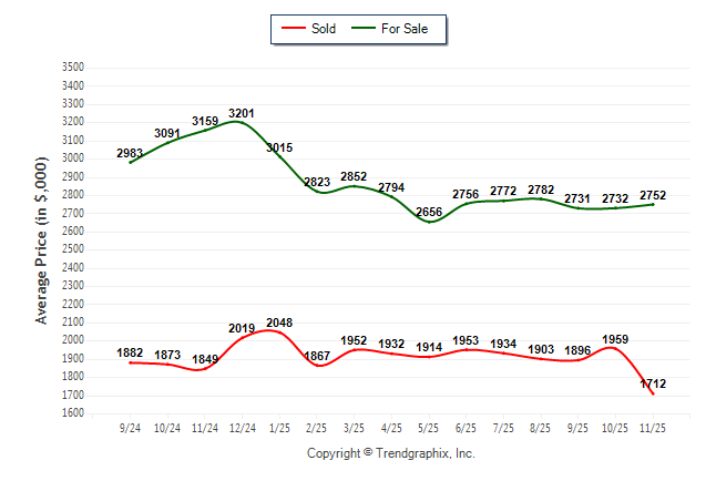 November 2025 Average For Sale Price was Neutral and Average Sold Price was Depreciating**