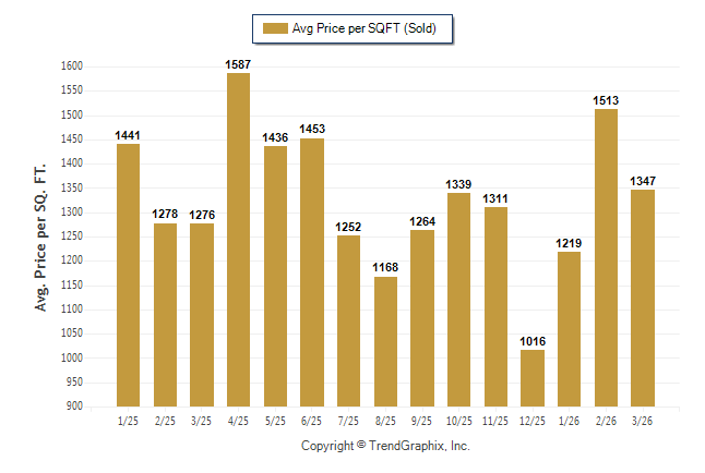 March 2026 Average Sold Price per Square Footage was Neutral**