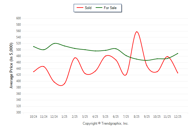 December 2025 Average For Sale Price was Appreciating and Average Sold Price was Depreciating**