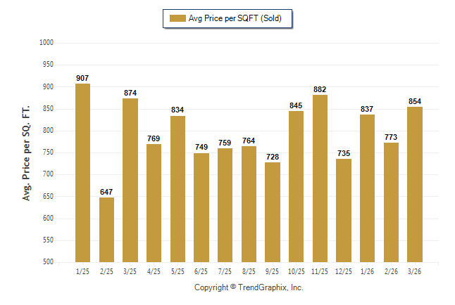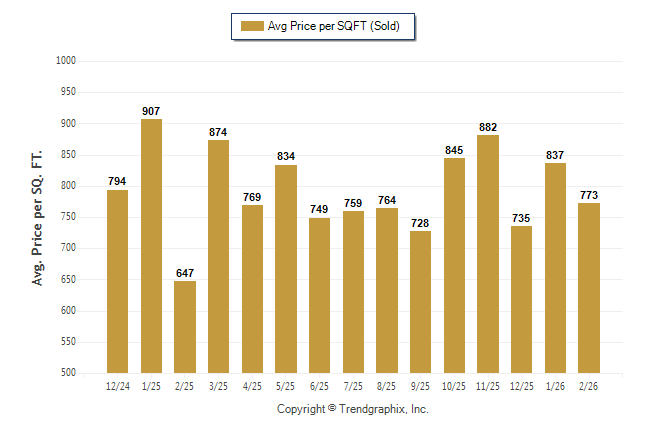 February 2026 Average Sold Price per Square Footage was Neutral**