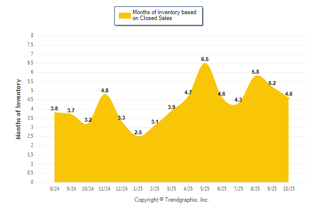 Curnt vs. Same Month 1 Yr Ago: Months of Inventory (Closed Sales)