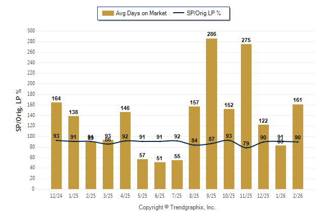 February 2026 Average Days on Market trend Remains Steady and Sold/Original List Price Ratio Remains Steady**