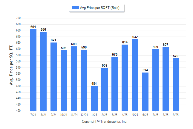 September 2025 Average Sold Price per Square Footage was Neutral**