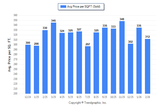 February 2026 Average Sold Price per Square Footage was Neutral**