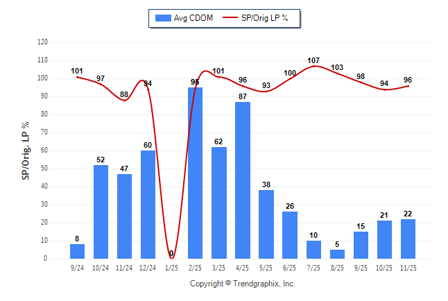 November 2025 Average Continuous Days on Market trend was Rising and Sold/Original List Price Ratio Remains Steady**