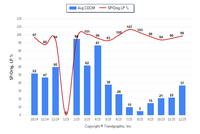 December 2025 Average Continuous Days on Market trend was Rising and Sold/Original List Price Ratio Remains Steady**