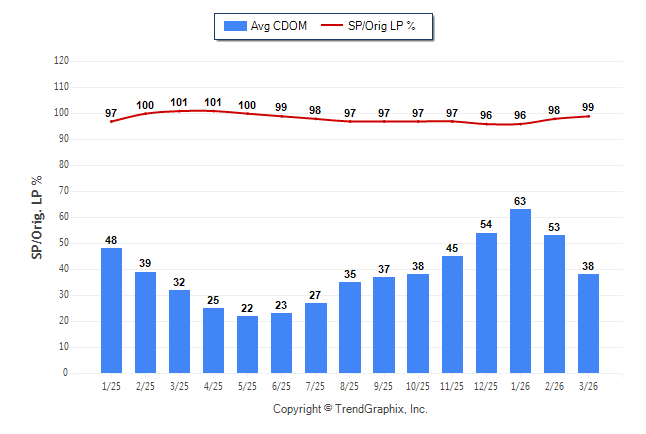 March 2026 Average Continuous Days on Market trend Remains Steady and Sold/Original List Price Ratio was Rising**
