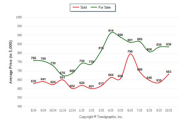 October 2025 Average For Sale Price was Neutral and Average Sold Price was Neutral**