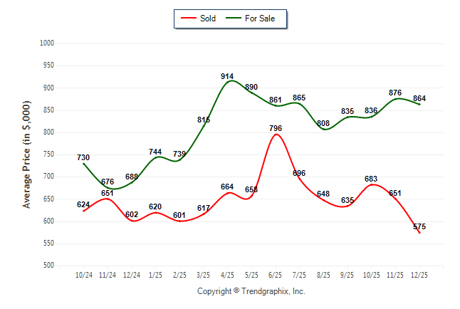 December 2025 Average For Sale Price was Neutral and Average Sold Price was Depreciating**