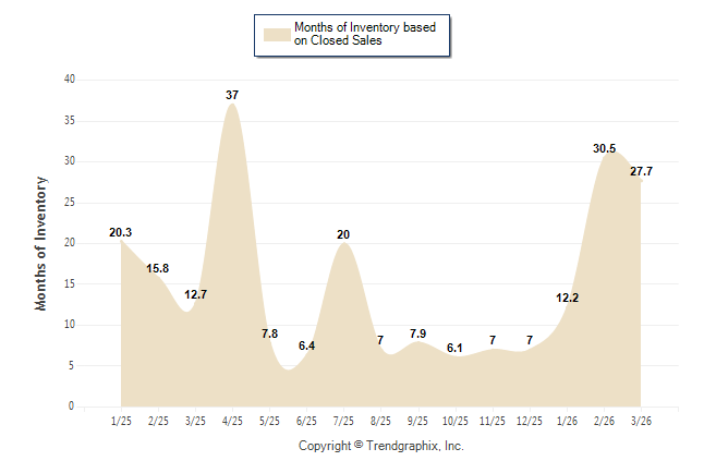 Curnt vs. Same Month 1 Yr Ago: Months of Inventory (Closed Sales)