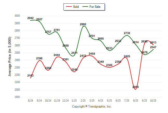 October 2025 Average For Sale Price was Neutral and Average Sold Price was Neutral**