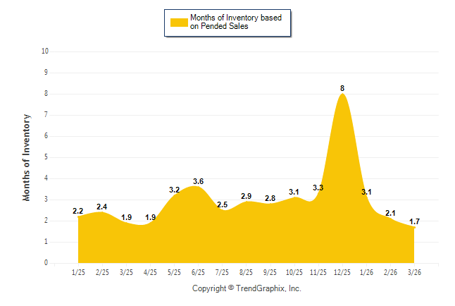 Curnt vs. Same Month 1 Yr Ago: Months of Inventory (Pended Sales)