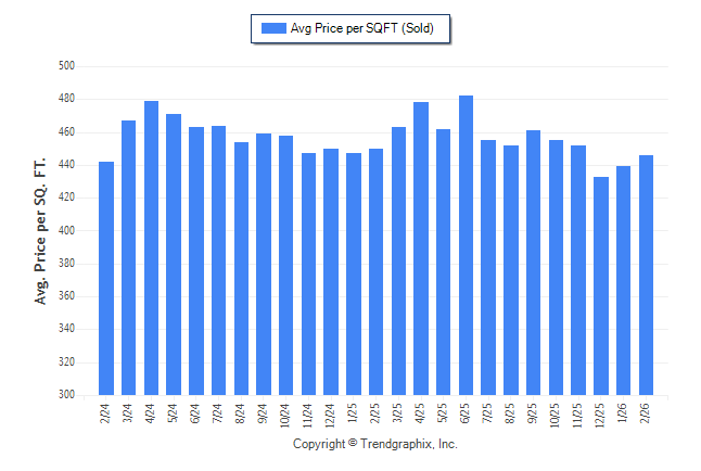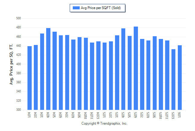 January 2026 Average Sold Price per Square Footage was Neutral**