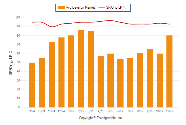 November 2025 Average Days on Market trend was Rising and Sold/Original List Price Ratio was Falling**