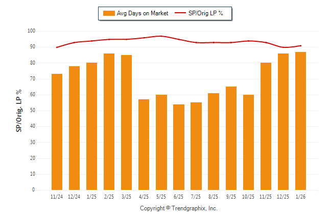 January 2026 Average Days on Market trend was Rising and Sold/Original List Price Ratio Remains Steady**