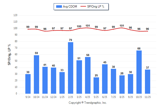 November 2025 Average Continuous Days on Market trend Remains Steady and Sold/Original List Price Ratio was Falling**