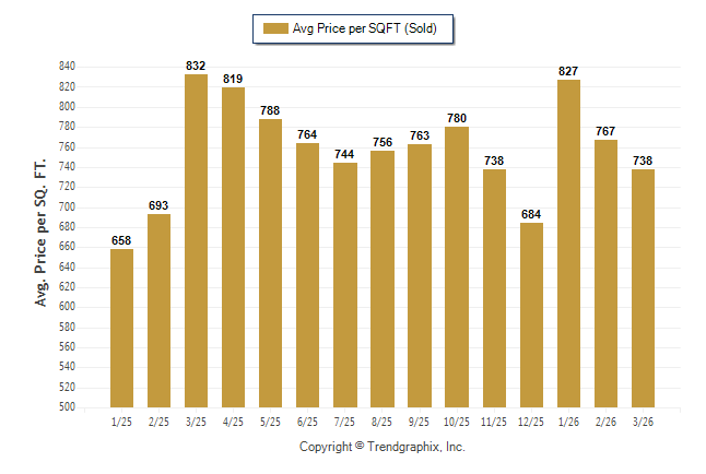 March 2026 Average Sold Price per Square Footage was Neutral**