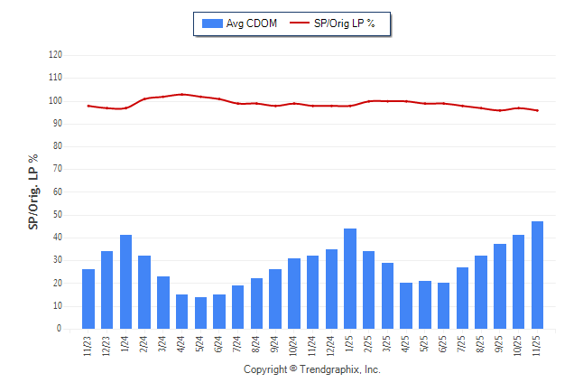 November 2025 Average Continuous Days on Market trend was Rising and Sold/Original List Price Ratio was Falling**