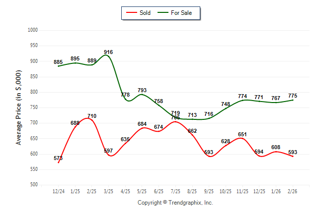 February 2026 Average For Sale Price was Appreciating and Average Sold Price was Depreciating**