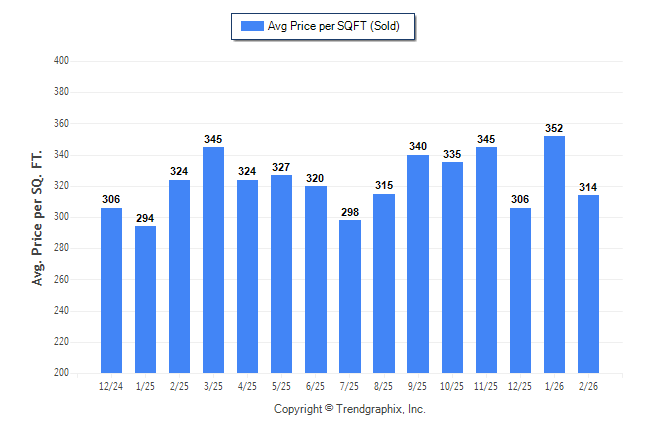 February 2026 Average Sold Price per Square Footage was Neutral**