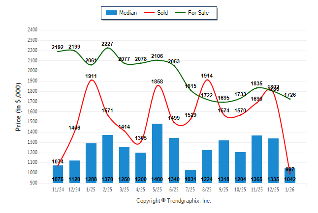 January 2026 Median Price was Depreciating, Avg. For Sale Price was Neutral, and Avg. Sold Price was Depreciating**