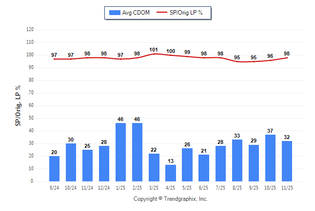 November 2025 Average Continuous Days on Market trend Remains Steady and Sold/Original List Price Ratio Remains Steady**