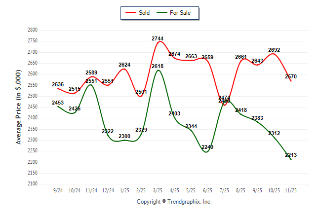 November 2025 Average For Sale Price was Depreciating and Average Sold Price was Neutral**