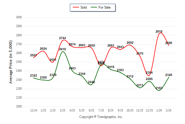 February 2026 Average For Sale Price was Neutral and Average Sold Price was Neutral**