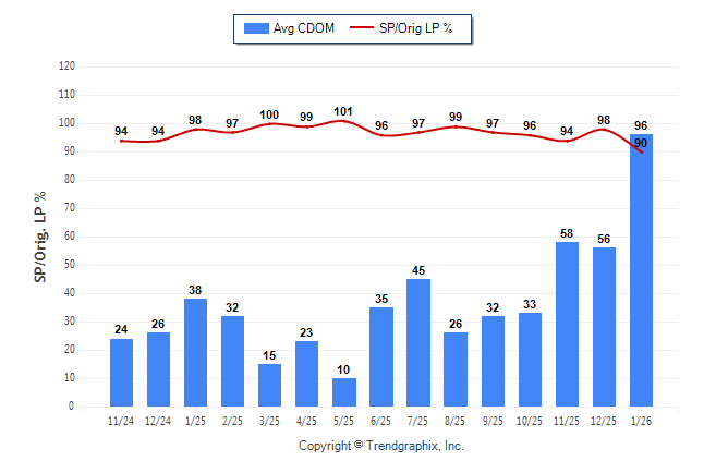 January 2026 Average Continuous Days on Market trend was Rising and Sold/Original List Price Ratio was Falling**