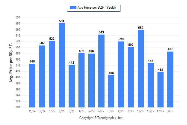 January 2026 Average Sold Price per Square Footage was Neutral**