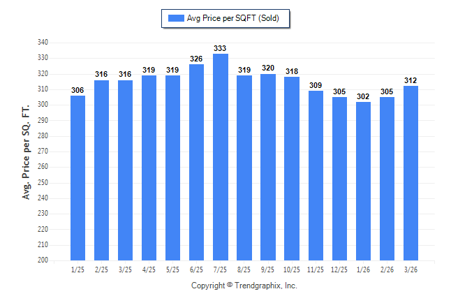 March 2026 Average Sold Price per Square Footage was Neutral**