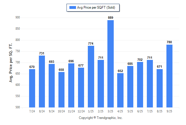 September 2025 Average Sold Price per Square Footage was Appreciating**