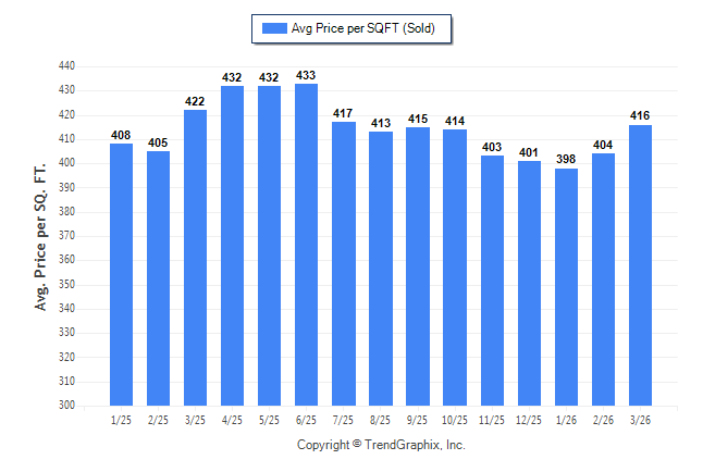 March 2026 Average Sold Price per Square Footage was Appreciating**