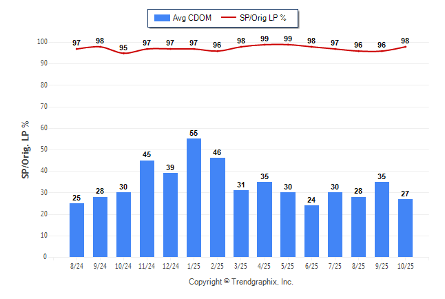 October 2025 Average Continuous Days on Market trend Remains Steady and Sold/Original List Price Ratio Remains Steady**