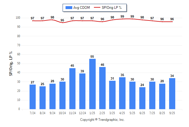 September 2025 Average Continuous Days on Market trend was Rising and Sold/Original List Price Ratio was Falling**