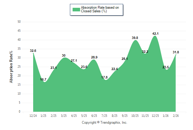 Curnt vs. Same Month 1 Yr Ago: Absorption Rate (Closed Sales) %