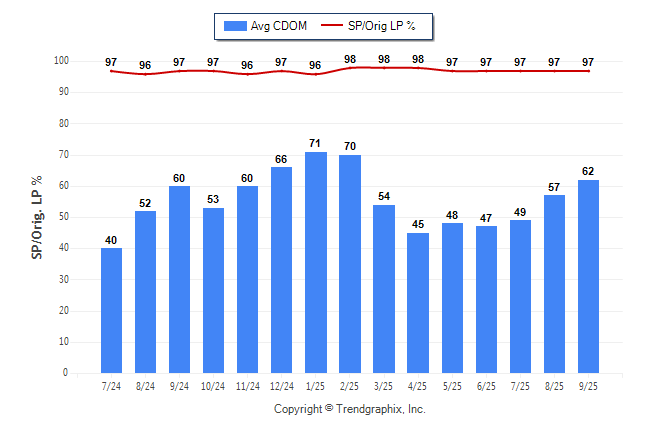 September 2025 Average Continuous Days on Market trend was Rising and Sold/Original List Price Ratio Remains Steady**