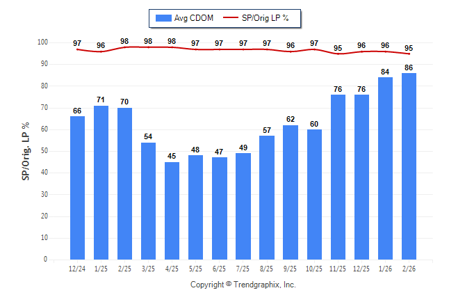 February 2026 Average Continuous Days on Market trend was Rising and Sold/Original List Price Ratio Remains Steady**